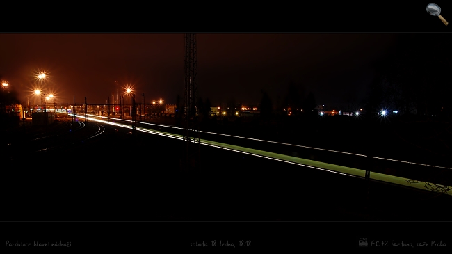 Pardubice hl.n., EC 72 Smetana, sobota 18. ledna 18:18, směr PRAHA