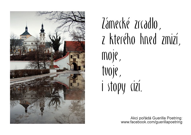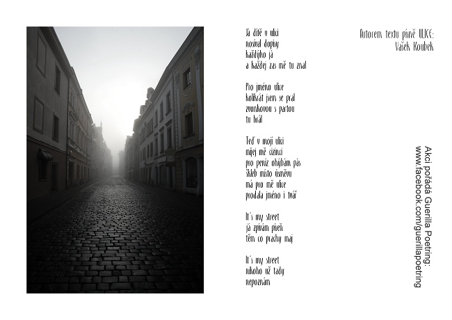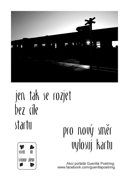 Pokud se chcete nejprve dovědět, v čem akce Guerilla Poetring (česky: Partyzánské básnění) spočívá, odkážu vás na domovské stránky tohoto projektu: www.guerillapoetring.webnode.cz
