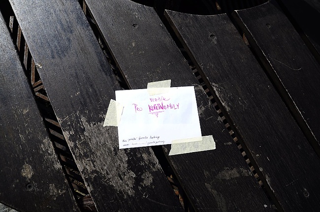 Druhou báseň / fotografii jsem naopak v Kostelní ulici našel. Zmoklou, ale našel. Nápis "BÁSEŇ PRO ULICI" byl nadále čitelný, proto jsem ji tam nechal. Budu se na ní docházet dívat a sám pro sebe budu tipovat, jak dlouho vydrží. Až ji někdo sundá, doufám, že to udělá proto, protože se mu bude líbit. Dnes, ve chvíli, kdy jsem Kostelní ulicí procházel, to bylo 77 hodin od chvíle, kdy jsem ji tam instaloval.